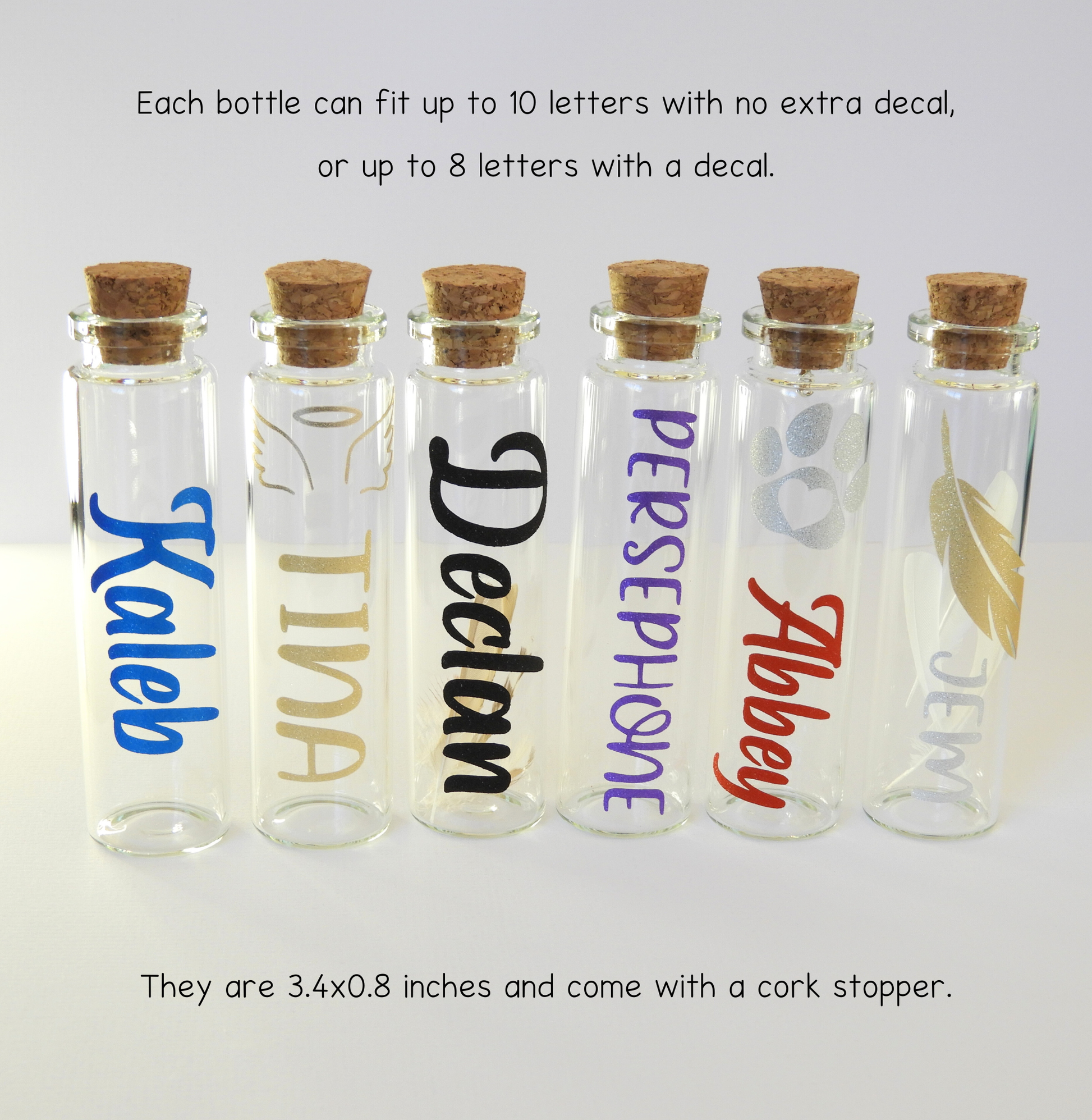 Each bottle can fit up to 10 letters, or up to 8 with a decal. Please keep in mind that the longer the name is, the smaller the text will be.
