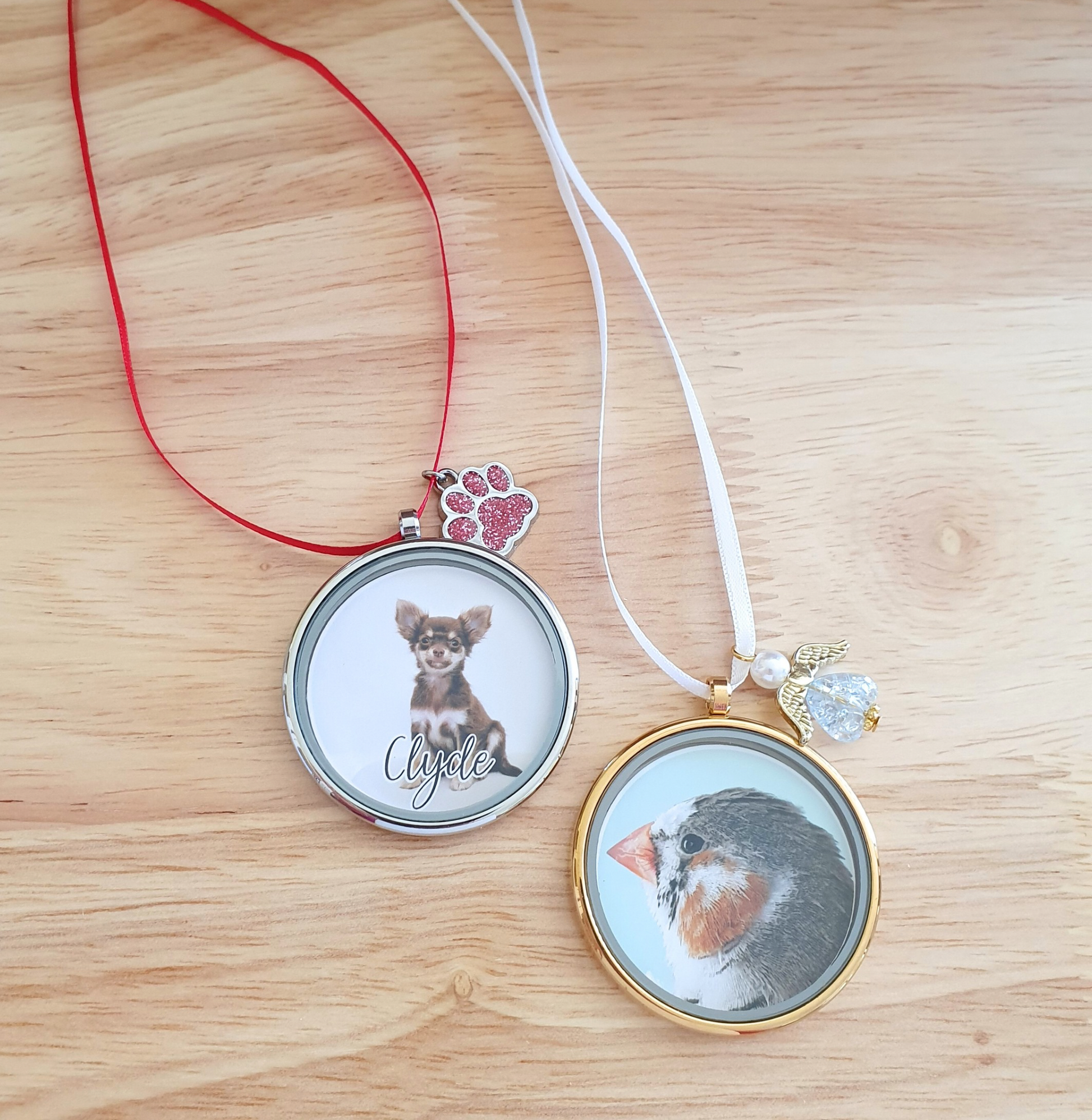 Honour and cherish your beloved animal friend with our beautiful memorial keepsake ornaments. These customisable photo lockets allow you to have 1-2 pictures of your pet, with the option of a custom message on one side. The lockets twist open, enabling you to change the photos or add a small amount of your pet's fur/feathers. Keep their memory close to your heart with this one-of-a-kind tribute to your furry or feathered best friend.